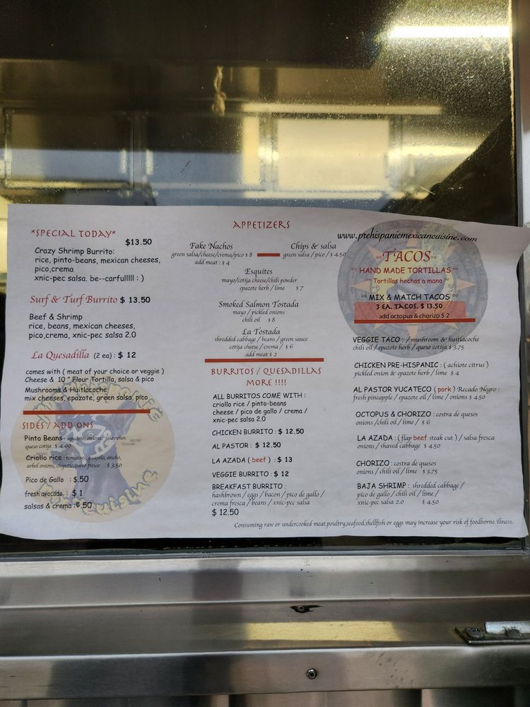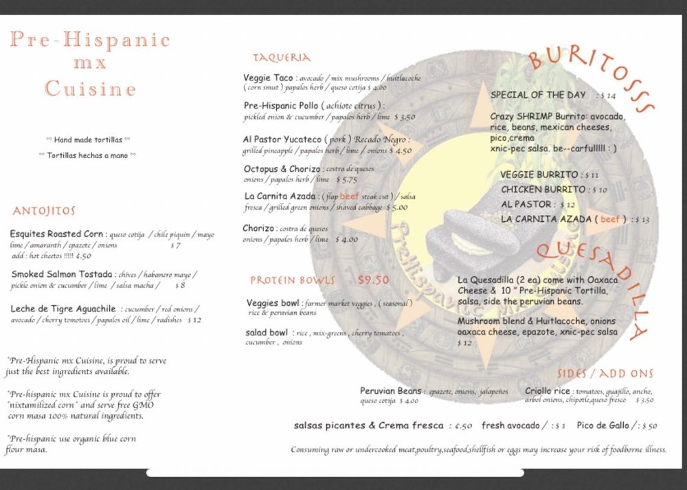 Prehispanic Mx Cuisine Menu (Update 2025)